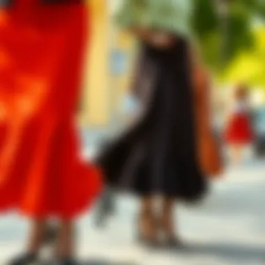 - Daha cesur kesimler: Uzun kloş eteklerin yanı sıra midi boylar da popüler hale geliyor.